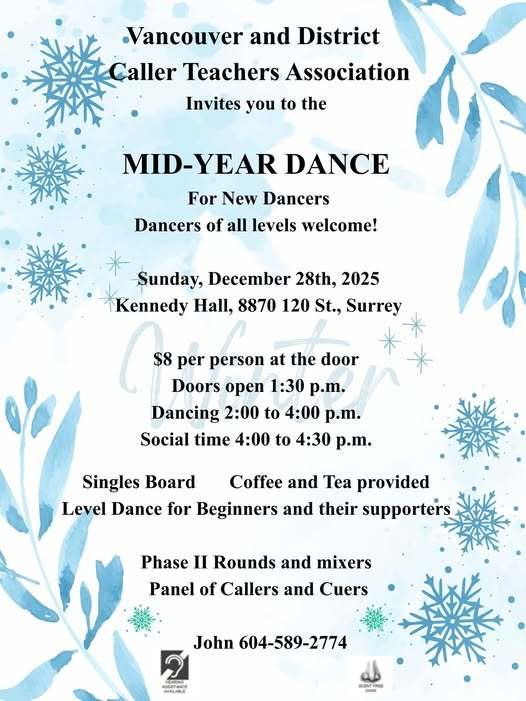 NOTE: We will be DARK (no dancing) on Friday, December 5, 2025 – the hall is unavailable.