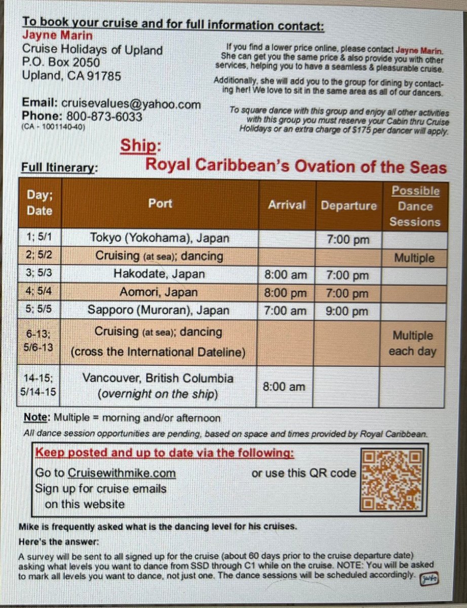 Note: Once a year in September (for January), all dancers must pay a $15 insurance fee.